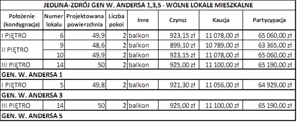 Mieszkania na wynajem JEDLINA ZDRÓJ